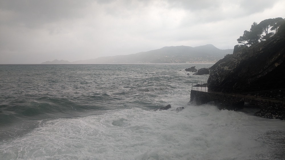 Il tratto più sorprendente arriva nei giorni di mare mosso. Le onde salgono di livello, sbattono contro le rocce, risalgono i muri della passeggiata in spruzzi alti e spettacolari. Da Rapallo a Chiavari il mare aperto prende il sopravvento, ma è a Zoagli che lo si sente più vicino, quasi addosso. È uno di quei luoghi in cui l’inverno amplifica le sensazioni invece di spegnerle.