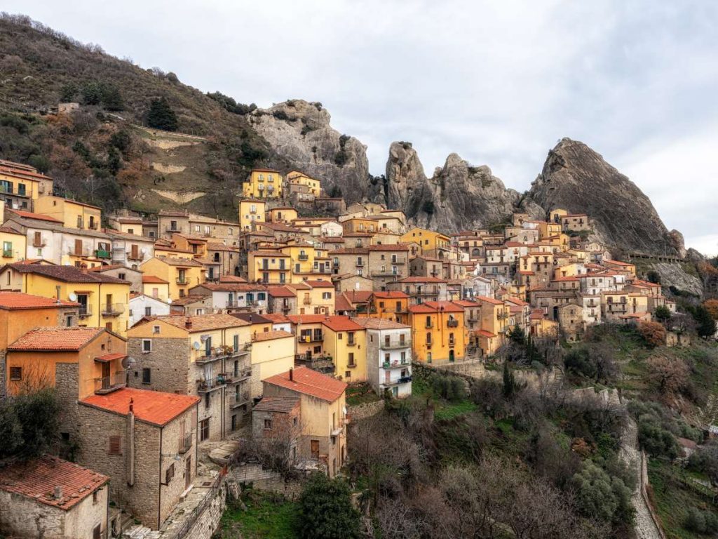 CASTELMEZZANO – Incastonato tra le Dolomiti Lucane, il borgo si arrampica sulle rocce e in autunno le montagne circostanti si colorano di toni caldi e intensi.