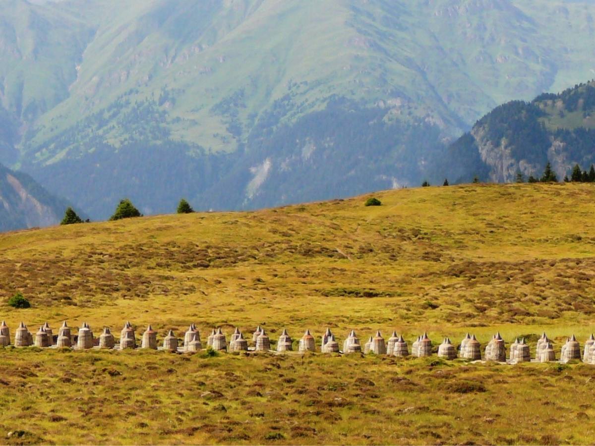 Queste fortezze silenziose mantengono una temperatura costante e rigida che consente di proteggere le cupole in acciaio che emergono dal prato. Con un po’ di attenzione, si possono notare i segni lasciati dai fulmini che negli anni hanno colpito le vette.
