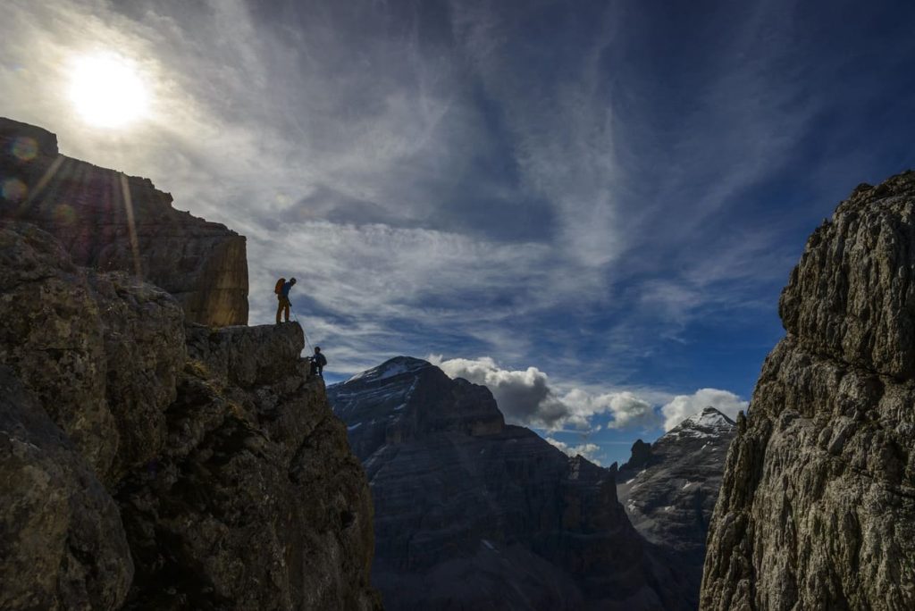 Su queste rocce che sembrano magiche, si sperimentano il batticuore e il sorriso allo stesso tempo. Il paesaggio che si apre man mano si sale, è spettacolare e ancora più spettacolare è la sua trasformazione all’ora del tramonto, chiamato in ladino, Enrosadira. La particolare composizione chimica di carbonato doppio di calcio e magnesio delle Dolomiti prende il caratteristico colore rossastro quando i raggi del sole, ad una certa inclinazione (alba e tramonto) colpiscono le rocce. Se durante il giorno le Dolomiti sono “pallide”, dal color grigio chiaro, all’alba e al tramonto si infuocano, regalando una diversa prospettiva. Entra in gioco il quarto elemento, il fuoco, che dipinge lo scenario con una grande pennellata di rosso.