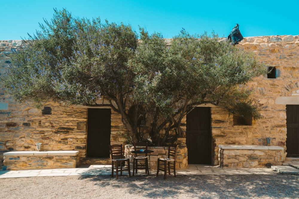 Qui si può cioè alternare una giornata di mare lungo la costa ovest a una salita verso i borghi dell’interno, dove la pietra e il silenzio cambiano completamente ritmo. L’isola conserva un’identità forte, meno intima di Tinos ma meno patinata rispetto a Mykonos e meno “costruita” rispetto ad altre destinazioni delle Cicladi.
