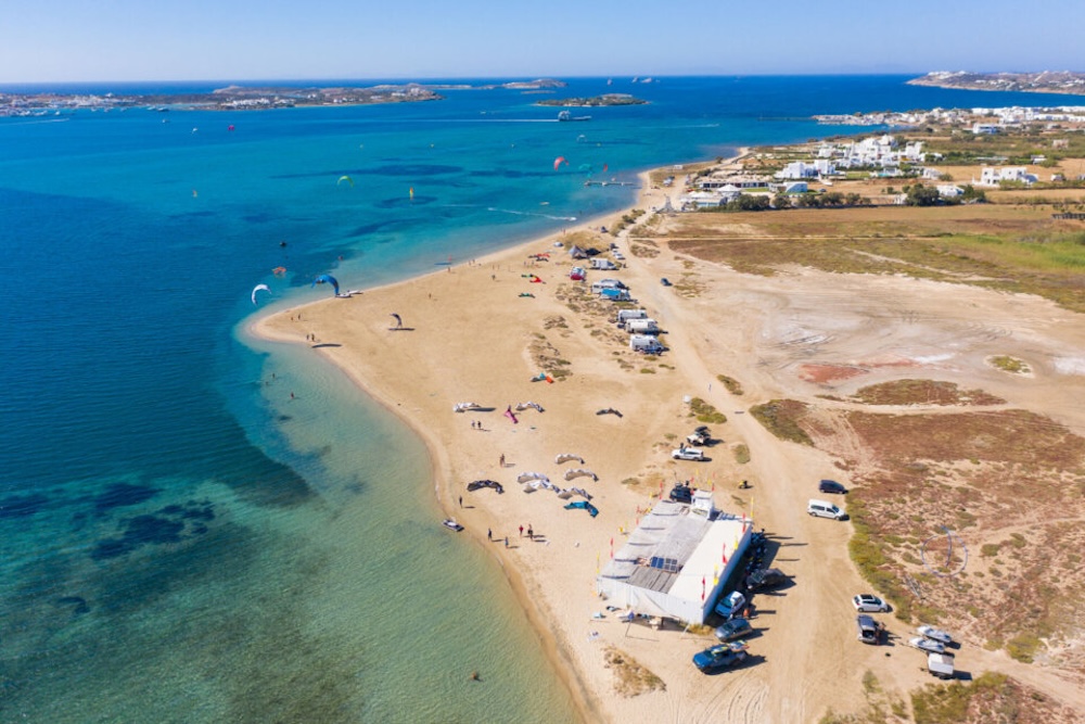 Paros è famosa per Golden Beach, lunga e dorata, ideale anche per windsurf e kitesurf. Santa Maria è ampia e organizzata ma ancora piacevole.